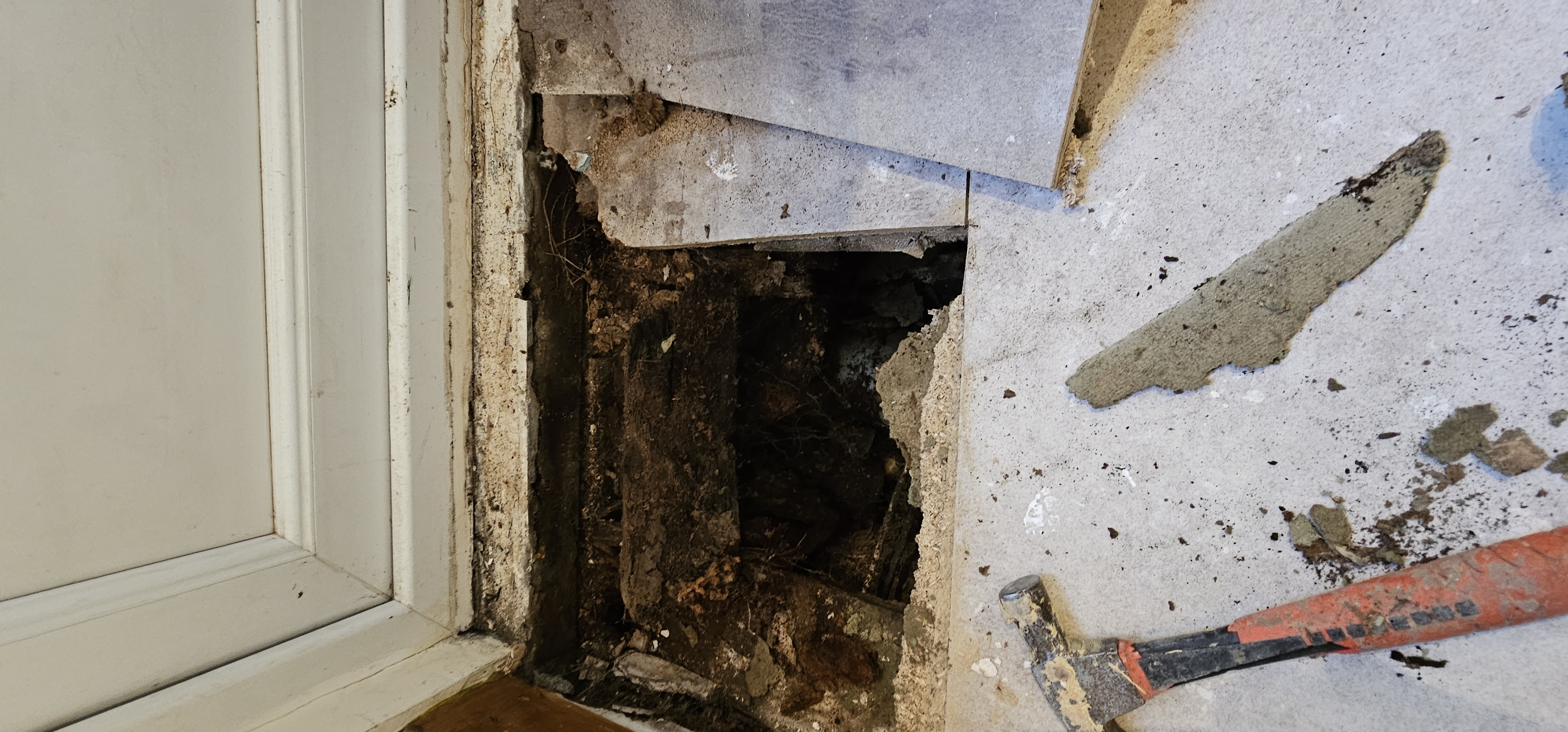 A large-scale engineered flooring installation in a semi-detached house in Cricklewood, NW2. The client had existing hardwood flooring that needed lifting and disposing of before the new engineered boards went down across the ground floor.