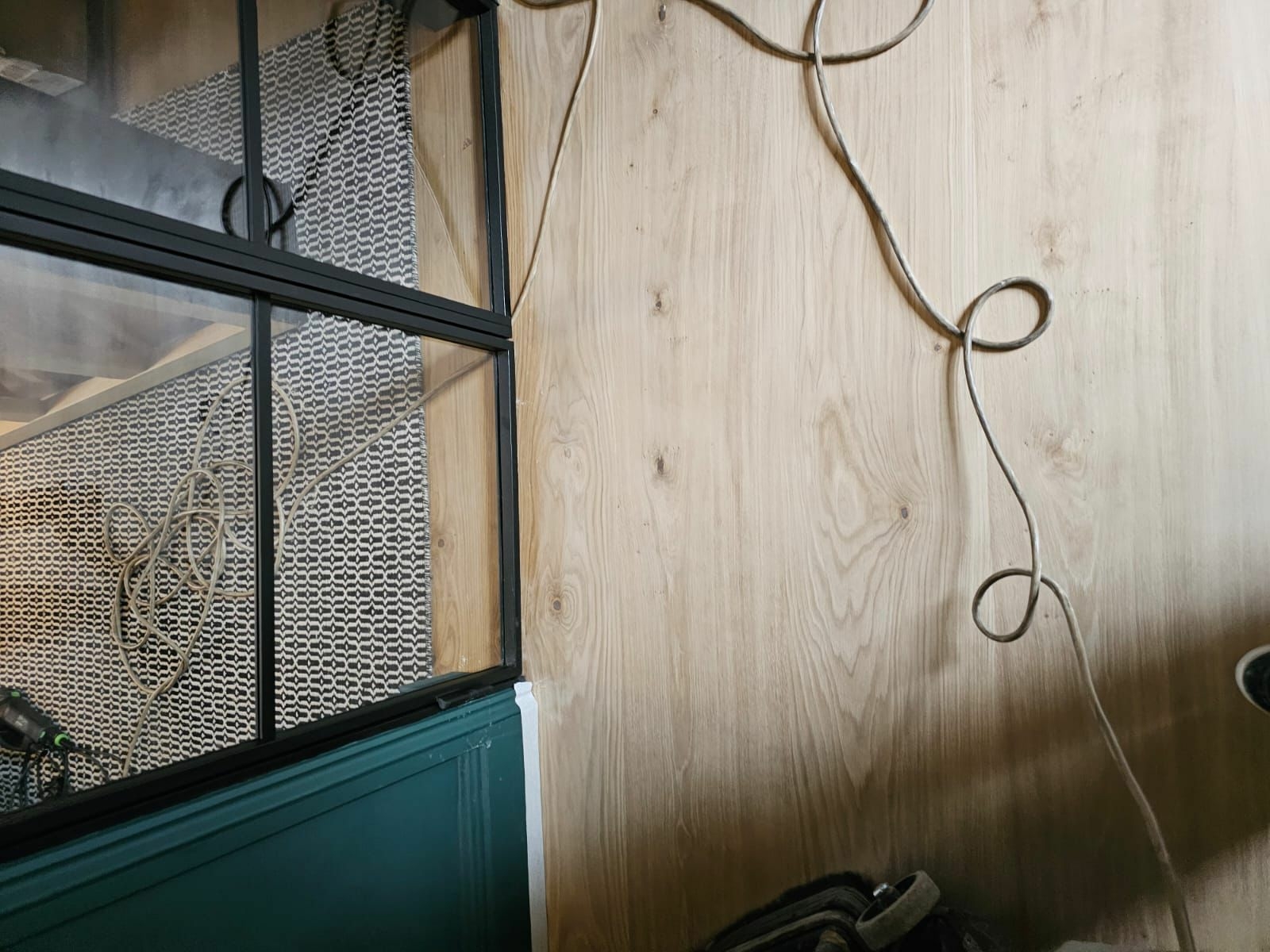 This detached house in SE21 had Dinesen wide-plank floors throughout the ground floor — a premium Douglas fir product that deserved a proper finish. The client had moved in and wanted the floors brought back before decorating. We also sanded the staircase at the same time.